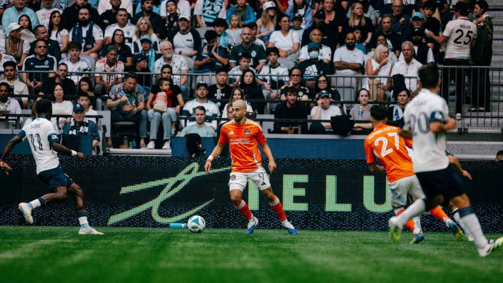 Houston arruinó la fiesta de bienvenida de Müller en el minuto 91 cuando Amine Bassi le dio un pase a Artur en el borde del área y el mediocampista central lanzó un tiro que superó las yemas de los dedos extendidos del arquero de Vancouver, Yohei Takaoka, para empatar el marcador en 1-1.