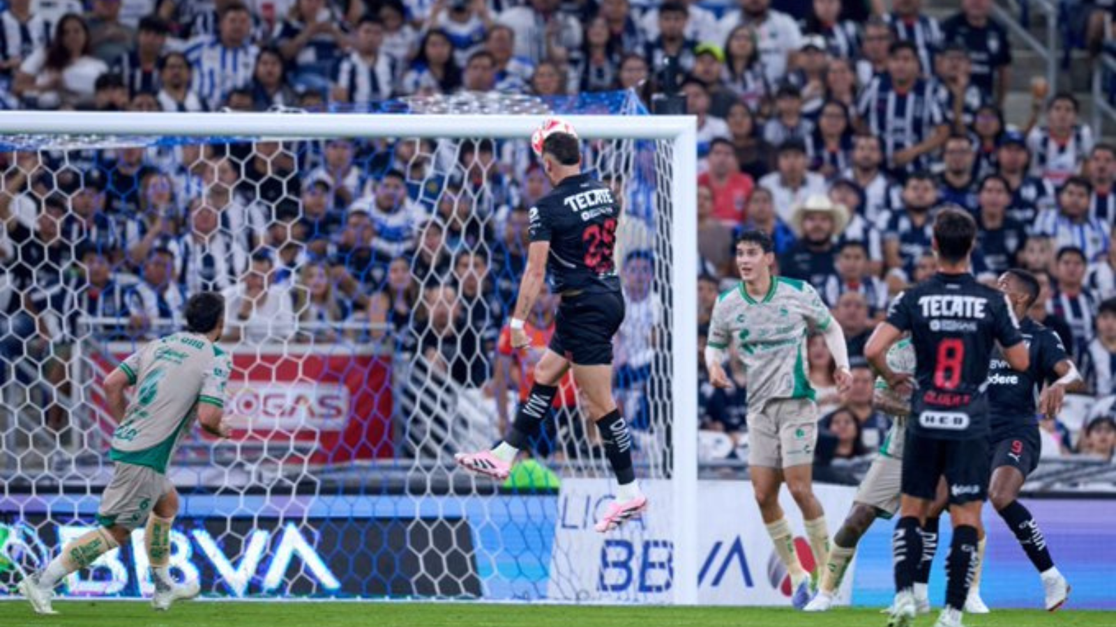 Sergio Ramos arrastraba su mala suerte, pues nuevamente anotó de cabeza, haciendo vibrar al Coloso de Guadalupe, pero Santander anuló la acción por un empujón al hacerse el espacio.