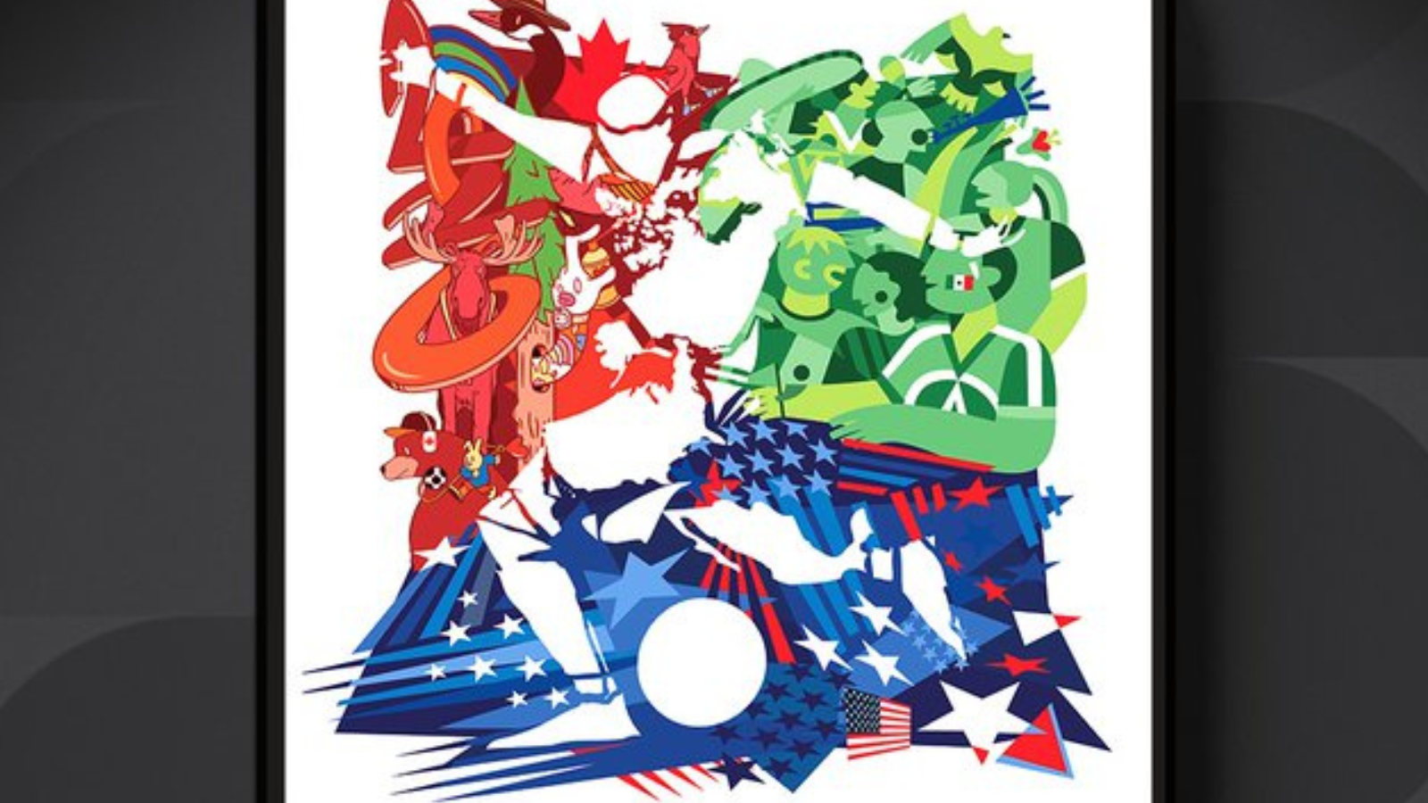 Los tres artistas que se unieron para conformar este póster son Carson Ting (Canadá), Minerva GM (México) y Hank Willis Thomas (Estados Unidos), en una obra que destaca la conexión y la unión del torneo.